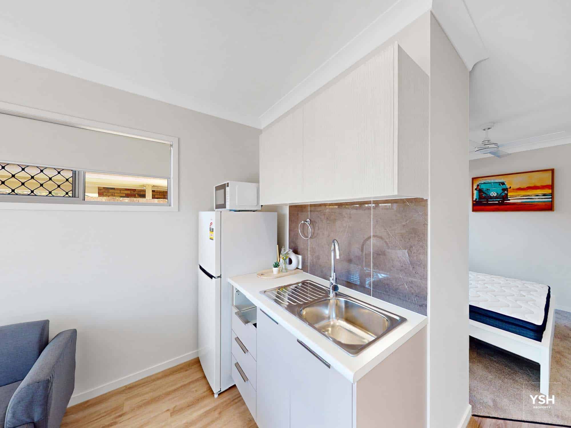 Fully furnished one-bedroom micro apartments with electricity, NBN, water included. Close to Wynnum Shopping Centre 1.6 km, Wynnum Plaza 2.7km, Breakwater Park 1.2km